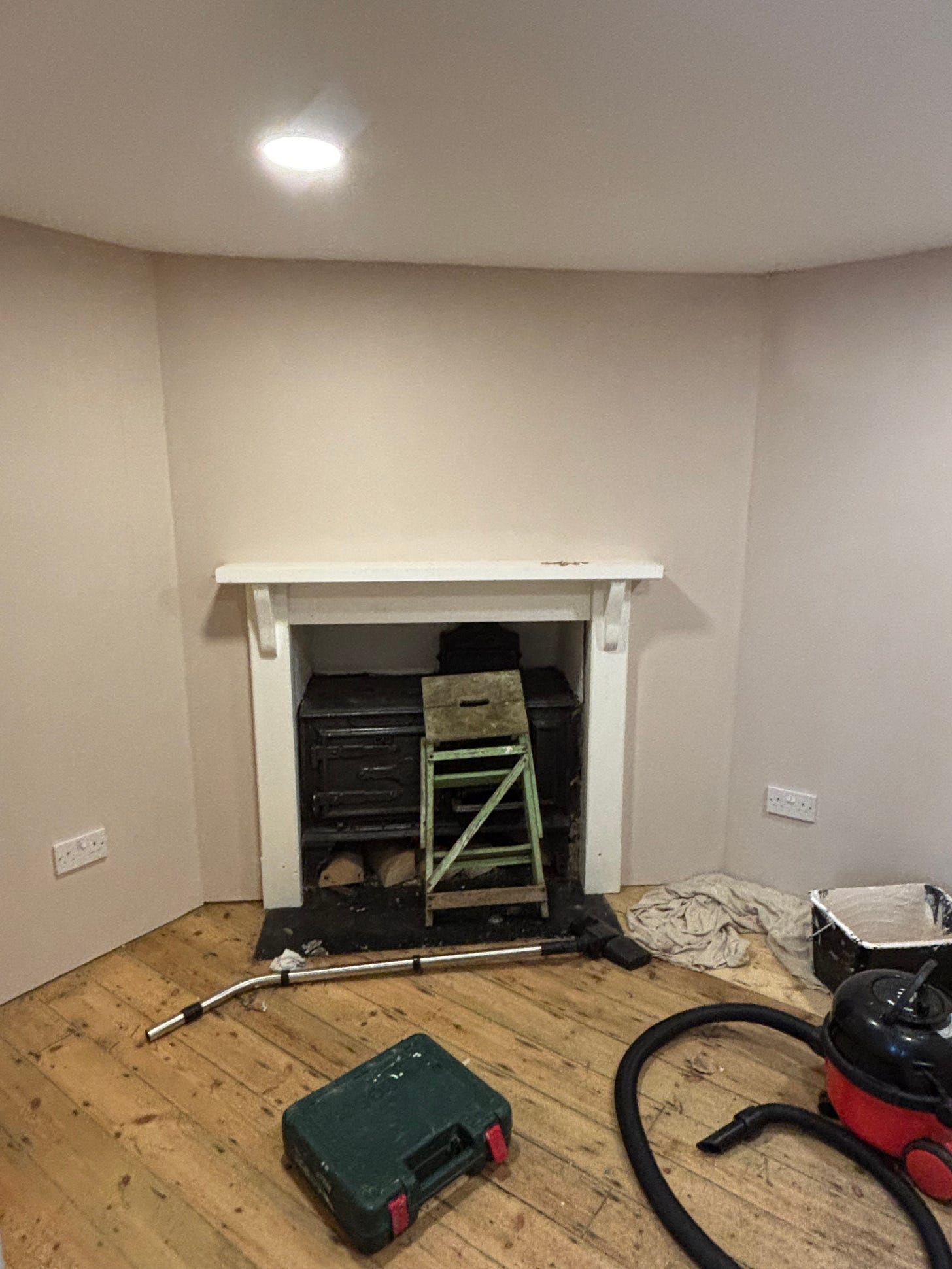 This is the back room on the ground floor which has got the original range in, it’s been painted in scallop by Farrow & Ball which was a gamble as I hadn’t tested a sample, I just looked at it and thought- that will work. Originally I was going to display the dried flowers in this room but now I’m thinking of using it for my pottery as it feels like a tiny kitchen, I want to make a feature out of that.