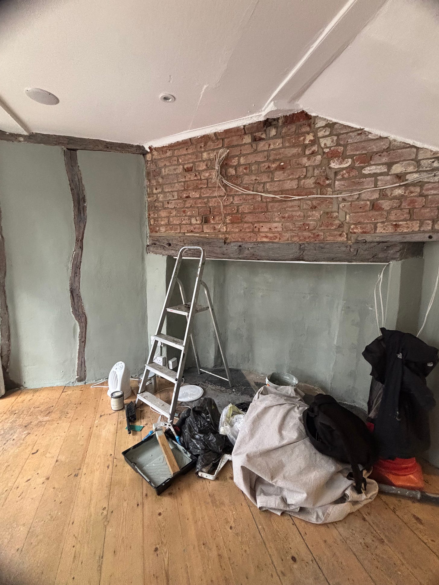 Hello my fellow garden lovers, how are you? I thought I’d share some pics with you of my new shop and give you a bit of an update. I think I am starting to see light at the end of the tunnel. My new premises is 25 Churchyard, Hitchin, in a beautiful old building full of character- not too big, not too small, but just right! Work started last week cleaning and painting, and this week it’s starting to feel more like mine than the previous occupants. A Bunch Of Wild has its own look, it shows up in my home, in the garden/greenhouse and studio space. It’s a little bit rustic, very laid back and calming, with an air of magic to it. I’m a huge fan of old beautiful buildings with lots of character and this shop fits perfectly! I’ve dismissed many over my three year search, I was being so picky- It had to look a certain way, be in the row I love and it had to have some magic to it. When I first walked into the empty space last week, the building felt sad and a little lost. Thanks to a wonderful decorator named Jason, it’s starting to breath again.